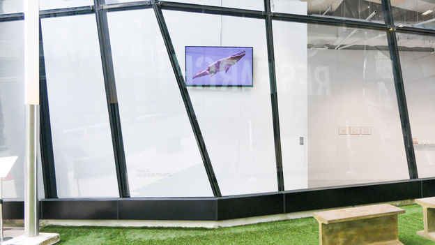 Echoing the migratory behaviours of the saltwater crocodile, the multichannel video takes an archipalegic form of presentation; decentralising across different areas and adopting different kinds of screens, heights, angles and sizes. The composition (zoom and angle) of the video is contingent on the space its substrate occupies and changes according to the way the screen is presented. This further fragments the corporeality of the crocodile in favour of an almost cubist becomingness of the human-conceived animal.