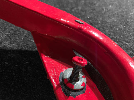 Video documentation of live performance, bed frame legs, chest harness, shorts, socks